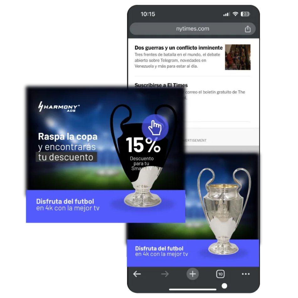 Somos HarmonyAds: el DSP que convierte la compra programática en crecimiento real. Unificamos inventario premium y audiencias a escala con activación en minutos, optimización en tiempo real y reportes transparentes para que cada impresión rinda más. Menos fricción, menor costo por resultado y más control: todo en una plataforma simple, medible y lista para escalar tu marca.